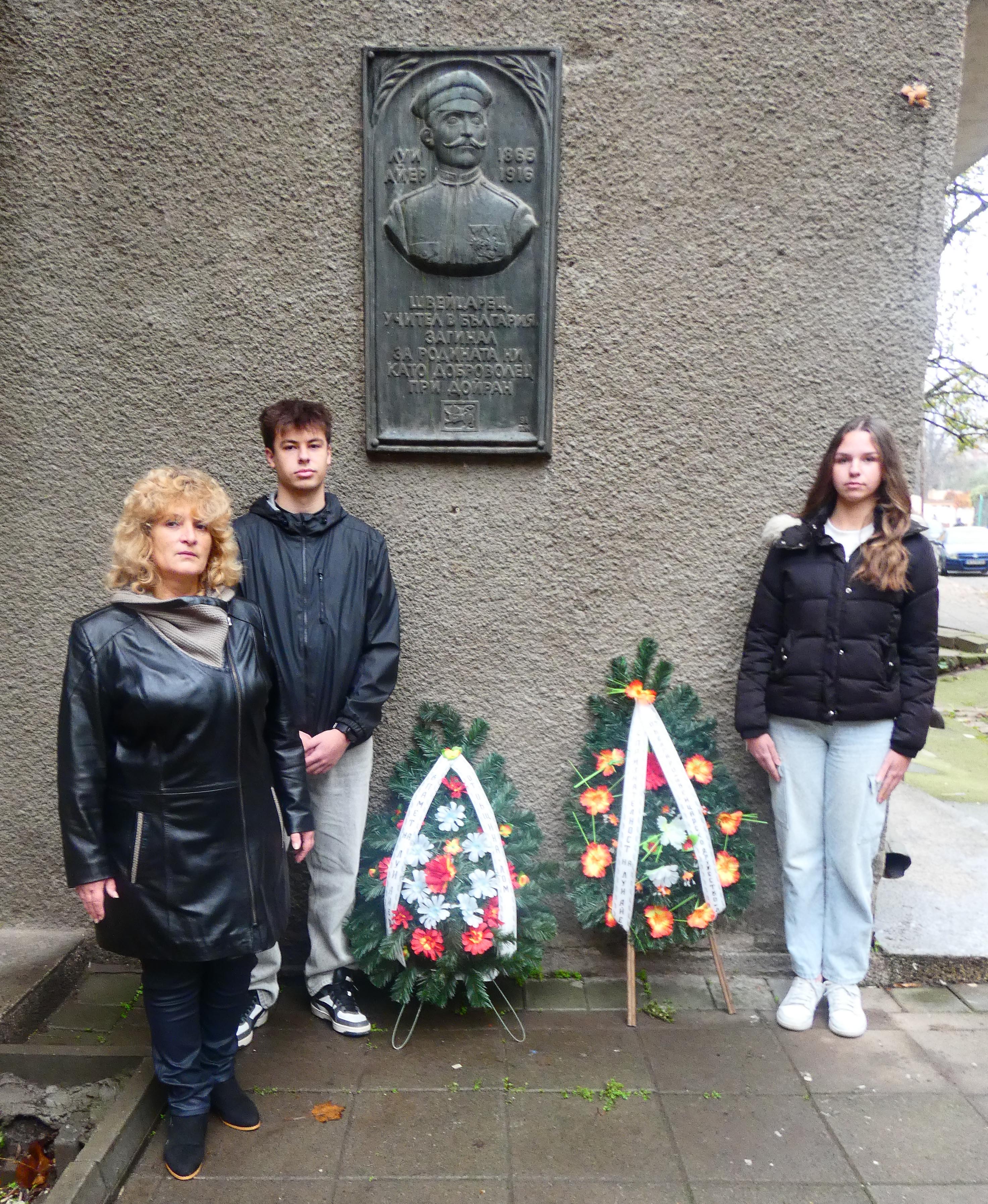 Споменът за делото на Луи Айер е жив. Венци на барелефа на швейцареца с българско сърце поднесоха Община Лом, Българо-швейцарското дружество „Луи Айер“ и ученици от СУ „Димитър Маринов“.