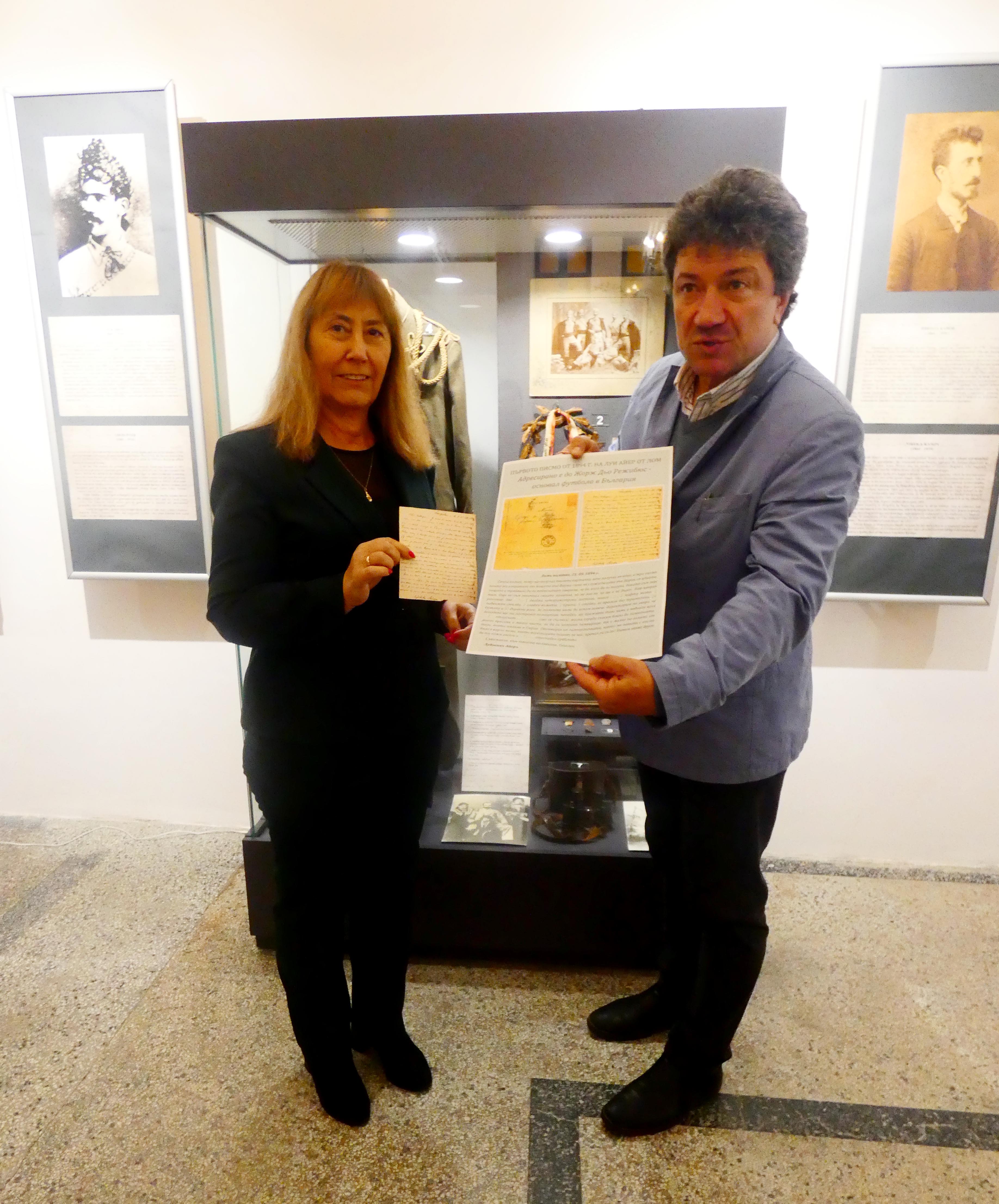 Уникално писмо на Луи Айер дари на Историческия музей в Лом писателят Бисер Тошев по повод 160 години от рождението на швейцарския педагог с българско сърце. Писмото с клеймо от 21.09.1894 г. е адресирано до основателя на футбола в България Жорж Дьо Режибюс. В него новопристигналият в крайдунавския град швейцарски педагог пише до своя колега какви спортни пособия да му бъдат изпратени за нуждите на училищата в Лом. С това се поставя началото на спортното образование в града и страната. Автентичното писмо е преведено от дългогодишния директор на Българския културен институт в Париж г-жа Диана Игнатова.