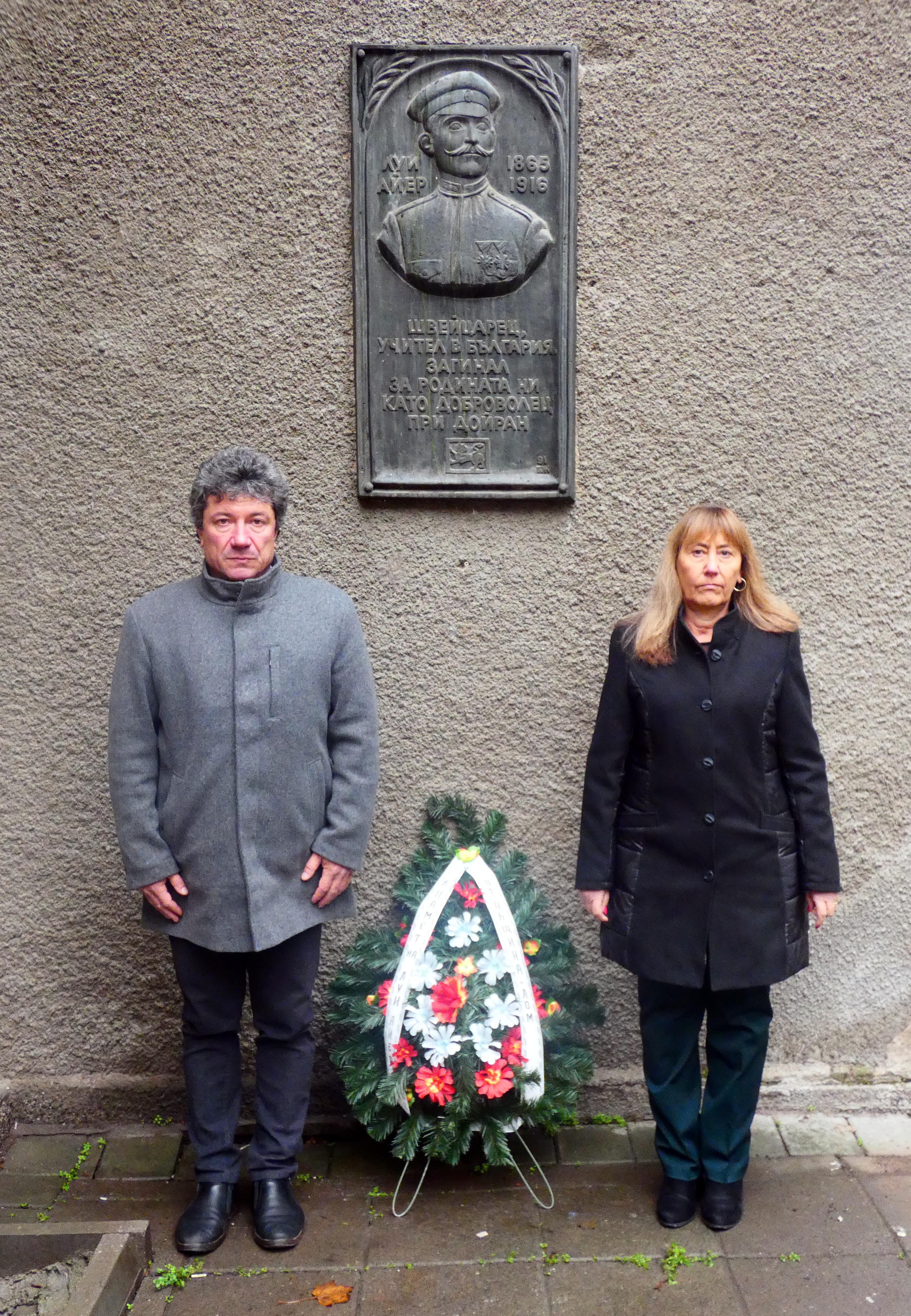 Споменът за делото на Луи Айер е жив. Венци на барелефа на швейцареца с българско сърце поднесоха Община Лом, Българо-швейцарското дружество „Луи Айер“ и ученици от СУ „Димитър Маринов“.
