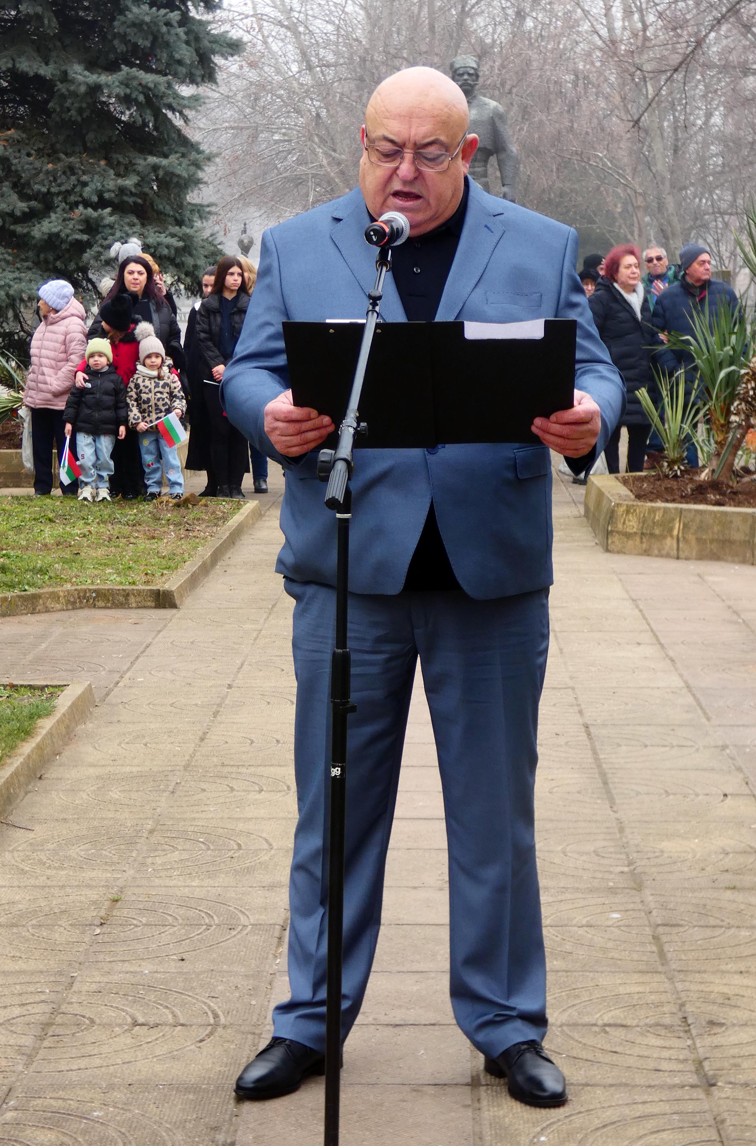 Неговият подвиг ни напомня, че свободата не е даденост, а завет, който трябва да отбраняваме с делата си всеки ден. И днес, полагайки венци пред паметниците на героите, да си обещаем да бъдем достойни наследници на тяхната смелост. Нека градим нашия град и община с вяра, единство и отговорност към бъдещите поколения.
